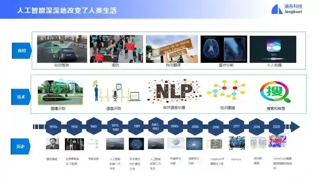人工智能深深地改变了人类生活。从应用上看,我们现在已经能实现人工智能在自动驾驶、安防、自动翻译、医疗诊断、个人助理等任务上的应用。这些应用背后依赖图像识别、语音识别、自然语言处理、知识图谱、搜索和推荐等技术。