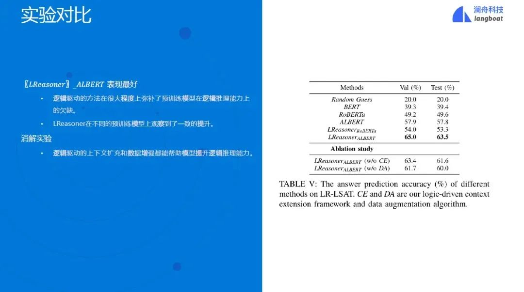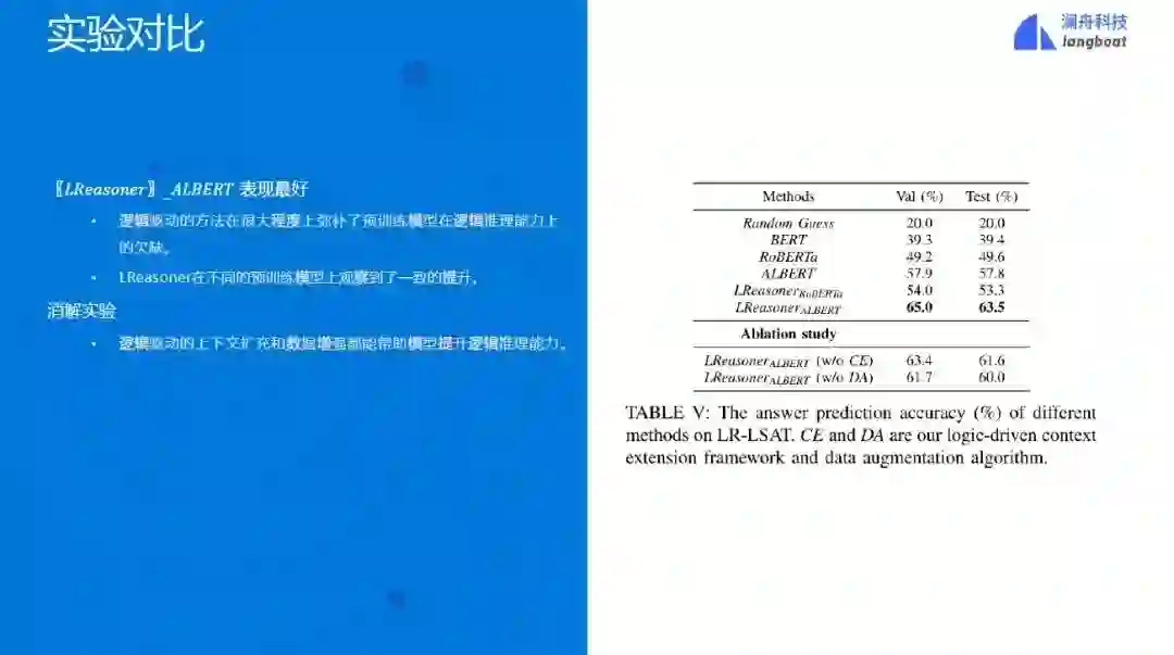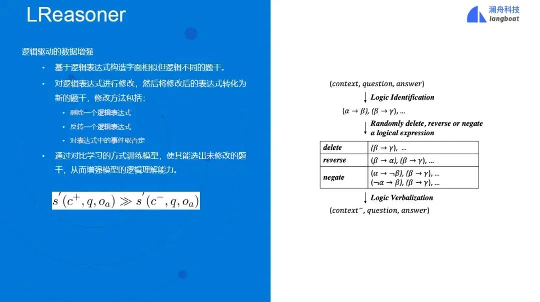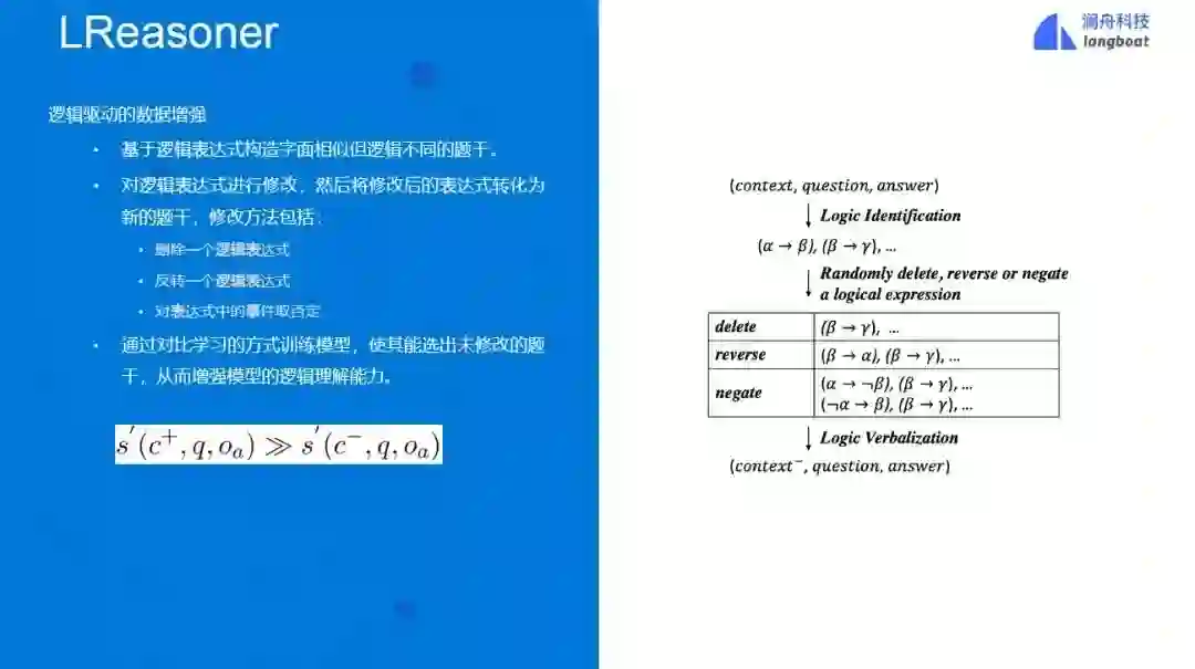 图进一步地,我们提出了逻辑驱动的数据增强算法,基于逻辑表达式构造字面相似但逻辑不同的题干。通过对比学习的方式训练模型,使其能选出未修改的题干,从而增强模型的逻辑理解能力。