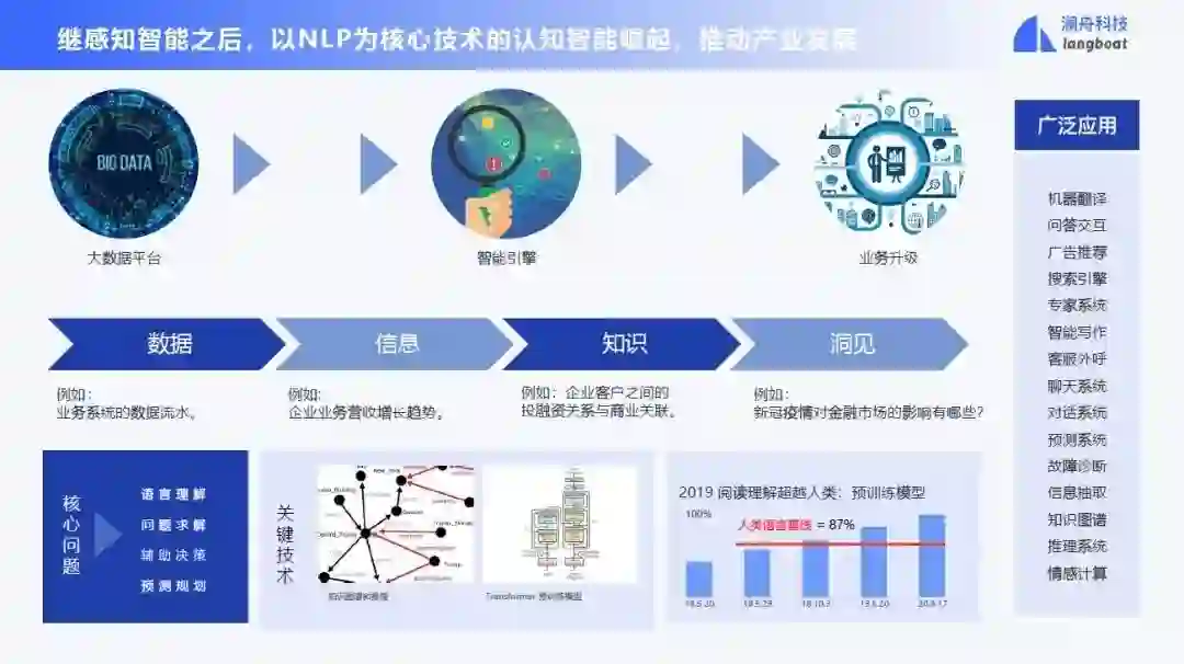 继感知智能之后,以 NLP 为核心技术的认知智能崛起,将推动产业发展。
