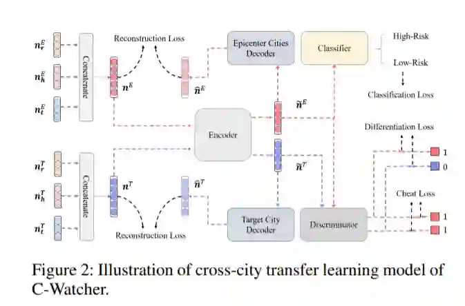 新型冠状病毒病(COVID-19)已经打破了人们的日常生活,并仍在全球肆虐。现有的非药物干预解决方案通常需要及时、准确地选择城市居民区的一个子集进行遏制甚至隔离,其中确诊病例的空间分布被视为子集选择的一个关键标准。尽管此类遏制措施成功地阻止或减缓了一些国家的COVID-19传播,但也有人批评其效率低下或无效,因为确诊病例的统计数据通常具有时延性和粗粒度性。为了解决这些问题,我们提出了C-Watcher,这是一个新颖的数据驱动框架,旨在筛查目标城市的每一个社区,并在新冠肺炎疫情从疫情中心蔓延到城市之前预测感染风险。在设计方面,C-Watcher从百度地图中收集大范围的长期人类移动数据,然后利用一套基于城市移动模式的特征来刻画城市中的每个居民区。此外,为了在局部爆发前将第一手信息(在震中传递)传递到目标城市,我们采用了一种新的对抗编码器框架,从与流动性相关的特征中学习“城市不变”的表示,以便精确早期检测目标城市的高风险社区,甚至在任何确诊病例已知之前。我们在新冠肺炎疫情爆发早期利用实时数据记录开展了大量的C-Watcher实验,结果证明了C-Watcher在大量城市早期发现高危社区的有效性和有效性。