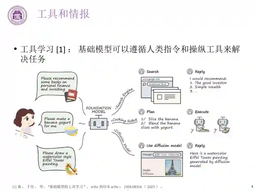 工具学习就是让语言模型学会使用工具,遵循人类的指令,操纵工具来完成任务。这里的工具可以是软件程序,比如搜索引擎、知识库、文档阅读器、图像识别模型等等,也可以是硬件设备,比如家用电器、机器人等。语言模型通过对环境中的工具进行调用和交互,利用工具反馈的信息,最终给出满足要求的高质量结果。