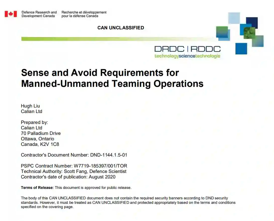在本技术说明中,报告了有关传感器技术和避让方法的最新研究与开发文献综述,这些技术和方法可用于未来在有人-无人协同(MUM-T)行动中在小型无人系统上实施感知与避让(SAA)能力。