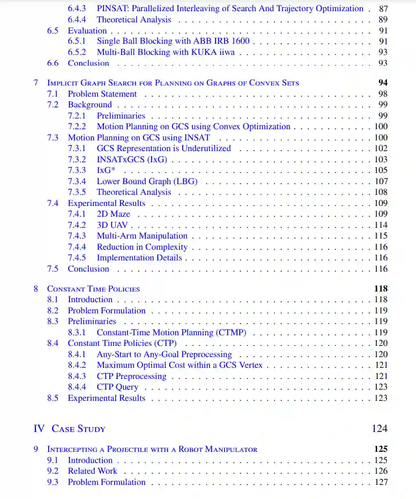 论文的下半部分探讨了加速INSAT规划器的三种不同方法:(1)CPU并行化:通过利用近期在并行化图搜索中的进展,我们实现了INSAT中基于优化的边缘计算的CPU加速;(2)更丰富的规划表示:我们使用稀疏且优化友好的规划空间表示——凸集图(GCS),以加速INSAT的规划。我们还展示了在凸集图(IxG)上使用INSAT作为规划器在某些理论属性和运行效率上超越了GCSOpt,前提是可以满足底层GCS中任何路径沿线的所有边约束;(3)预处理:通过离线计算运动库,我们可以保证对IxG的任何规划查询提供常数时间解决方案。这些方法共同提升了INSAT规划器的性能和效率,使其更能够应对复杂的规划任务。