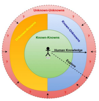 在这四种情况中,"已知-已知"是最明显的一种,人们可以对一个特定的问题有完整的了解,而 "未知-未知"则完全相反,也是最具挑战性的一种。因此,重点应该是制定策略,以发现可能的未知数,从而将其转换为已知数的数据。然而,在许多情况下,这可能不是小事,这可能需要应急计划和适应性技能来应对不可预见的情况。