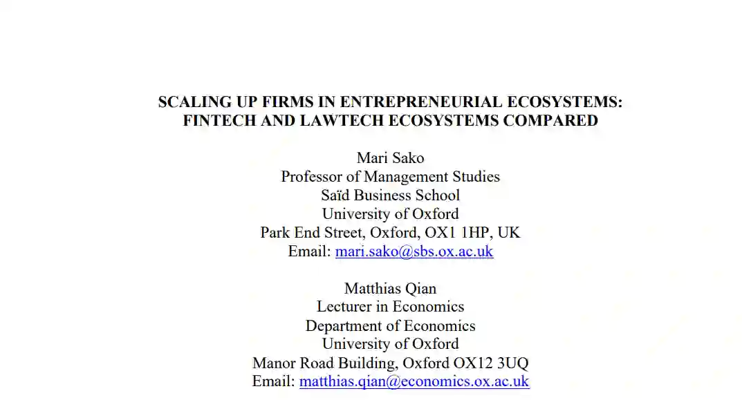 是什么因素推动了创业生态系统中公司的规模扩大?我们通过调查初创公司创始人在生态系统内的社会关系是否解释了公司的相对成功来回答这个问题。我们在两个市场(金融科技和法律科技)和三个地点(伦敦、纽约和旧金山湾区)开发了一个新颖的初创公司及其创始人数据库,形成了六个生态系统。我们发现,社会联系越紧密的生态系统增长越快,获得外部资金的时间也越早。在每个生态系统中,拥有更紧密社会关系的初创公司创始人可以实现更快的增长和更早的外部融资。因此,社会关系是社会资本的关键指标,可以在生态系统和个人层面捕捉到。我们提出了计算这些指标的不同方法,并可能以一种稳健的方式应用于所有初创企业和生态系统,对创业者、投资者和政策制定者都有用。