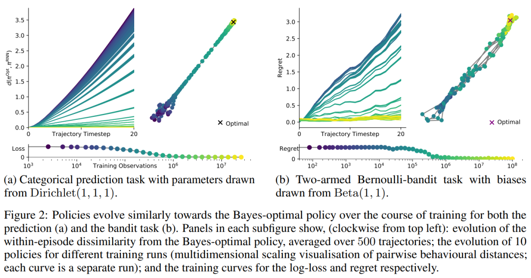 在元训练过程中,元学习者收敛于贝叶斯最优(第4.2节)。我们的经验表明,贝叶斯最优策略是学习动态的不动点。
