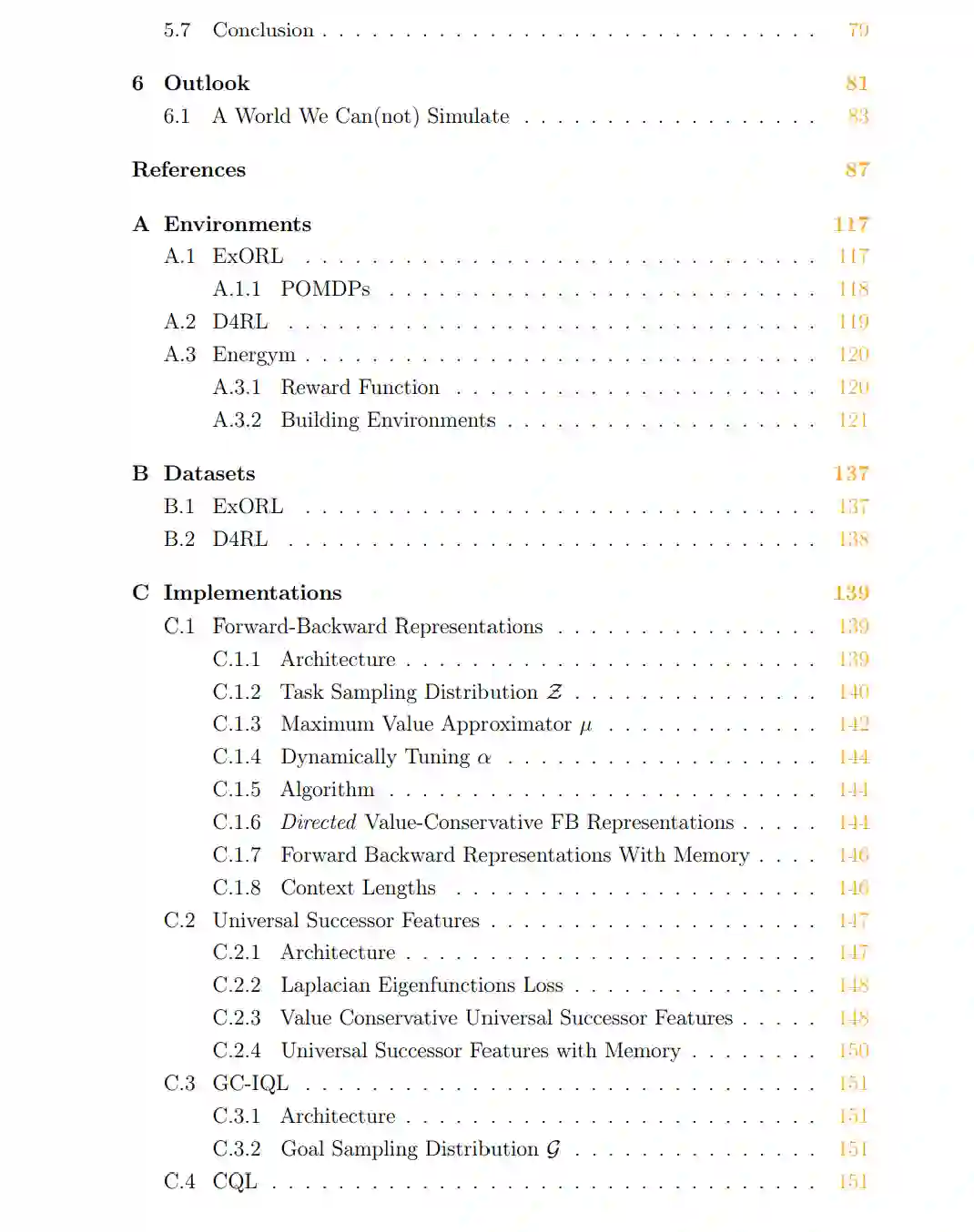 现代强化学习(Reinforcement Learning, RL)系统揭示了有关人类通用问题求解的一些深层规律。在那些能够低成本模拟新数据的领域,这些系统能够学习到远超人类能力的序列决策策略。现实社会中存在许多问题,其解决同样依赖这种能力,但这些问题往往处于无法低成本生成新数据的领域。在这种情境下,我们可以基于已有数据构建模拟器,但这些模拟器始终只能近似正确,并且在被查询到其训练分布之外时可能会出现严重错误。因此,我们训练智能体所处的环境与希望其最终部署的真实世界环境之间必然会存在失配(misalignment)。应对这种失配正是零样本强化学习(Zero-Shot Reinforcement Learning, Zero-Shot RL)的核心关注点——在这一问题设定中,智能体必须在完全没有实践机会的前提下,能够泛化到一个新任务或新领域。 尽管在理想化场景下实现零样本强化学习的方法已经取得了令人瞩目的进展,但若要在真实世界中复现这些成果,仍需新的研究。本文认为,要实现这一目标,至少需要应对三类约束:其一是数据质量约束:真实世界的数据集往往规模有限且同质化严重;其二是可观测性约束:在真实世界中,状态、动态和奖励通常只能被部分观测到;其三是数据可用性约束:事先获得数据的假设并不总是成立。 本文提出了一系列能够在这些约束下执行零样本强化学习的方法。通过一系列实证研究,我们揭示了现有方法的不足,并论证了所提出技术在弥补这些缺陷方面的合理性。我们相信,这些设计使我们更接近于能够部署到现实世界、解决实际问题的强化学习方法。
