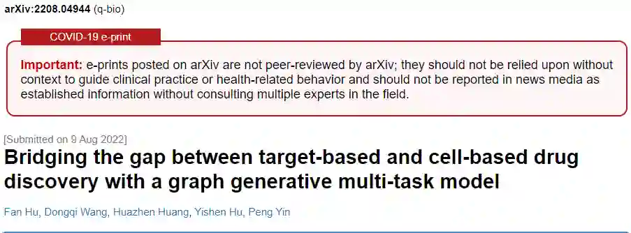 编译 | 童永其 审稿 | 王成 本文介绍的是由中国科学院深圳先进技术研究所的Fan Hu、Dongqi Wang等人发表在arXiv上的预印文章《Bridging the gap between target-based and cell-based drug discovery with a graph generative multi-task model》。作者提出了一种基于图的多任务深度学习模型(MATIC)来识别同时具有靶标抑制和细胞活性的化合物。在SARS-CoV-2 数据集上,MATIC模型比传统方法在筛选体内有效化合物方面更具优势。作者探索了模型的可解释性,发现靶标抑制(体外)或细胞活性(体内)任务学习的特征与分子性质相关性和原子功能存在差异。基于这些发现,作者利用基于蒙特卡洛算法的强化学习模型生成具有体外和体内功效的新型多属性化合物。