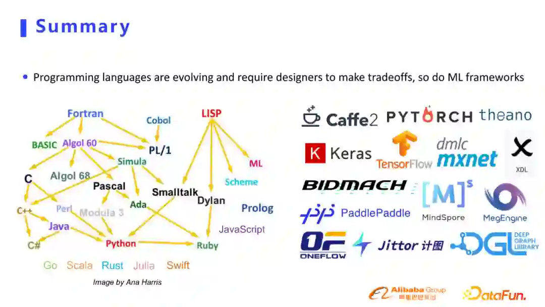 最后再借鉴编程语言的例子做下总结。 总有人会问为什么会有这么多的编程语言,其实大体也是因为语言的不断进化,在不同场景下做了不同的权衡。可以看到,同样的原因也正在促使如此多优秀框架的产生,让整个机器学习的生态蓬勃向前发展!