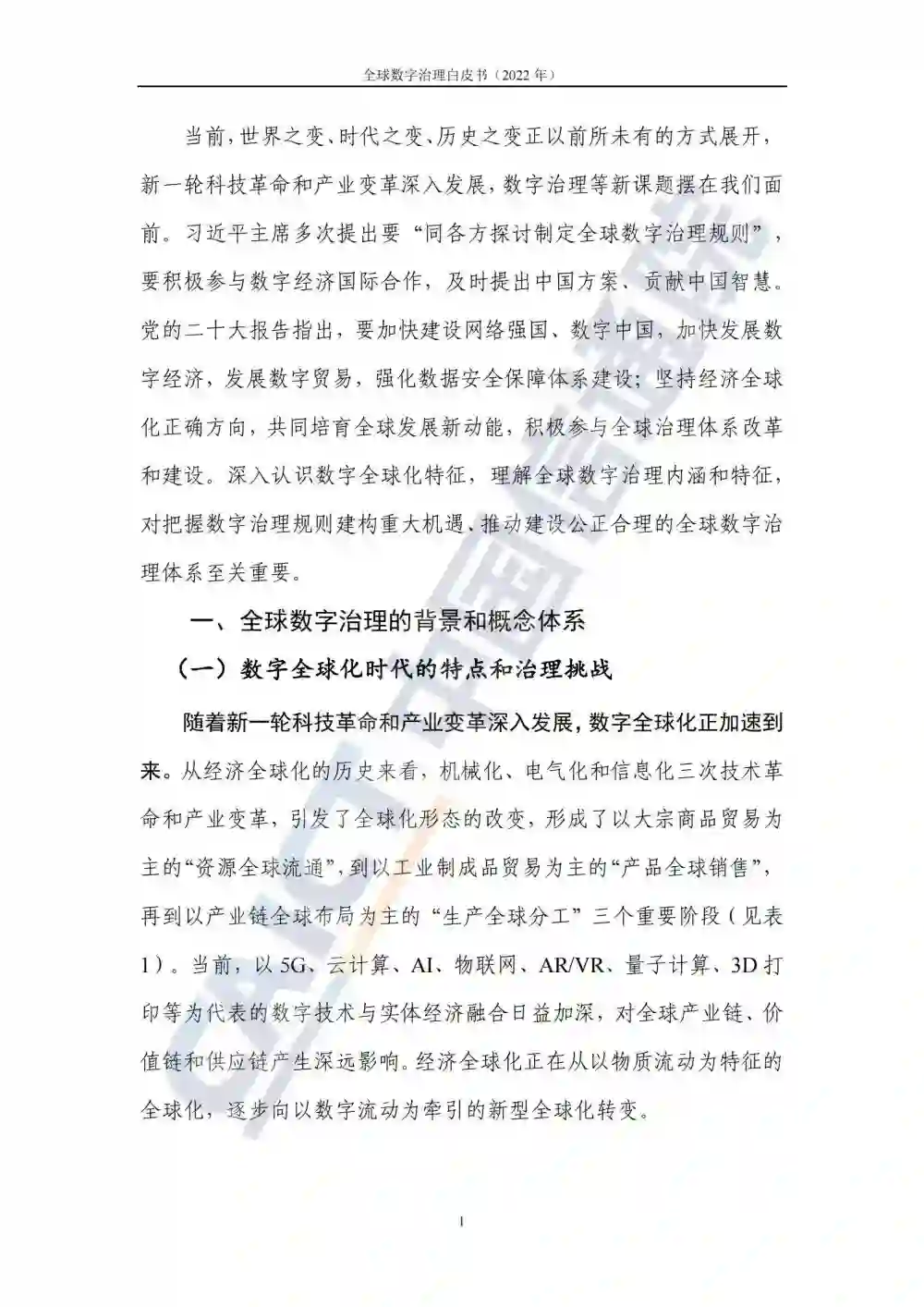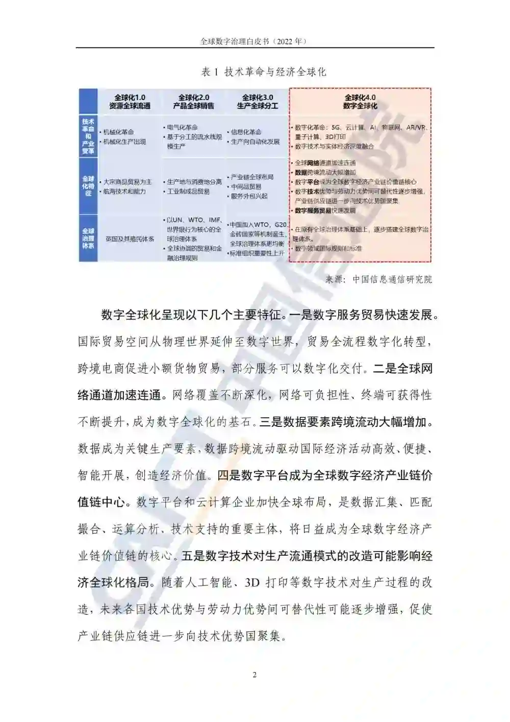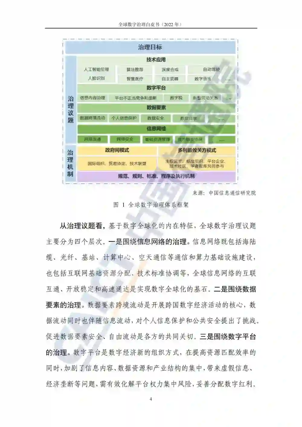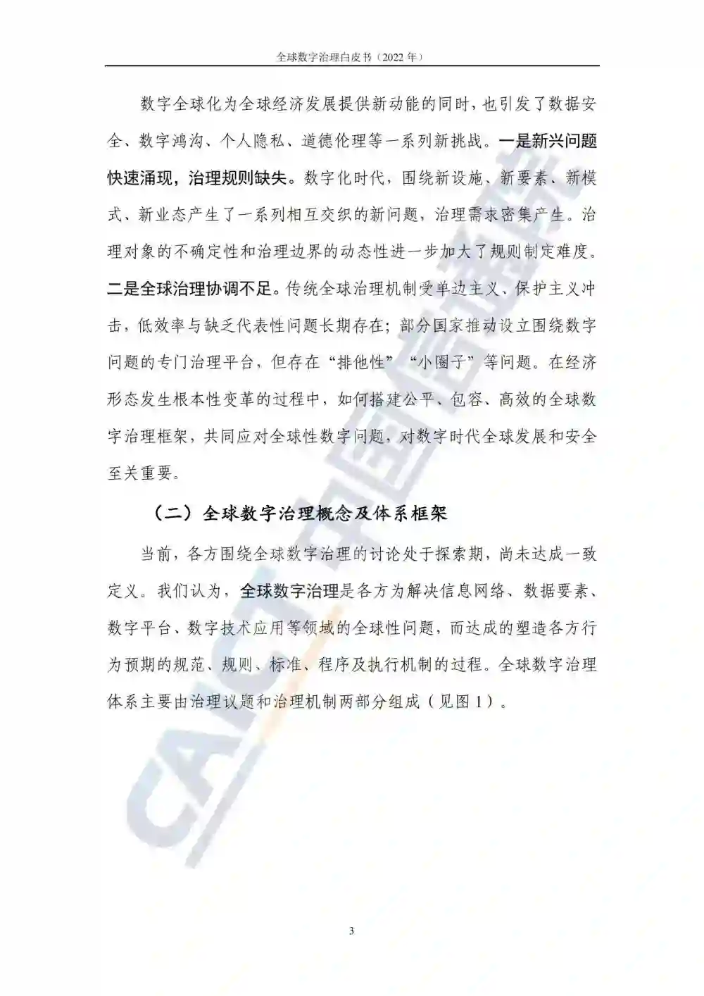 2023年1月10日,由中国信息通信研究院(以下简称“中国信通院”)编写的《全球数字治理白皮书(2022年)》(以下简称“白皮书”) 在“2023年ICT+深度观察报告会”全球数字治理分论坛上正式发布。