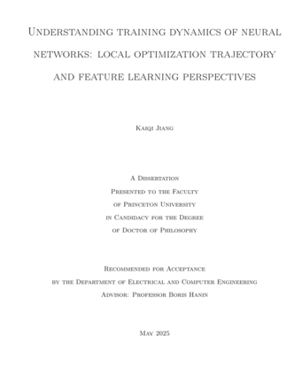本论文将聚焦于神经网络中优化算法的局部轨迹,并尝试从优化视角和特征学习视角理解其训练动态。 从优化视角出发,我们将比较自适应优化方法(如 Adam)与非自适应方法的局部损失几何,并指出自适应方法可能会将其轨迹偏向具有某种均匀性特性的区域。接着,我们将证明这种均匀性特性是促使优化加速的一个重要因素。