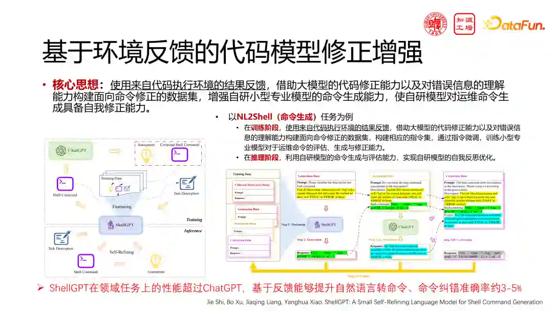 在命令生成领域也应用了自我纠正能力。考虑到在使用命令行时,用户可能无法一次性输入正确的命令,而是需要根据报错信息进行修改和调整。我们借鉴了这一机制,将其应用于大模型中,使大模型能够基于报错信息或其他反馈进行自我修正,从而提高命令生成的准确率。