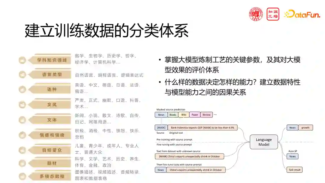 我们正在研究一个工作,就是将语料进行系统化分类,类似于知识图谱中的整体分类。尝试使用这些分类来预训练模型,希望获得更强大的能力。目前,我们已经初步建立了训练语料分类体系,并取得了一些积极的结果。这些分类不仅存在于语料中,而且确实能有效增强模型的能力。