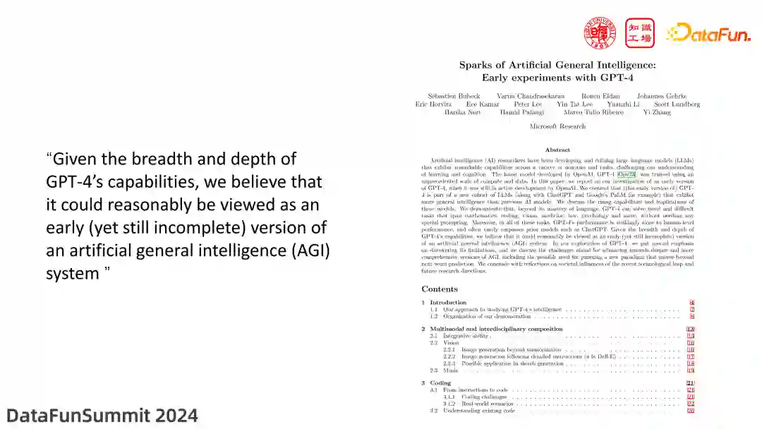 来自 GPT4 的技术报告中指出,GPT4 仍处于通用人工智能(AGI)的初级阶段。而目前研发中的 GPT4.5 或 GPT5 则已展现出了 AGI 的某些特征。