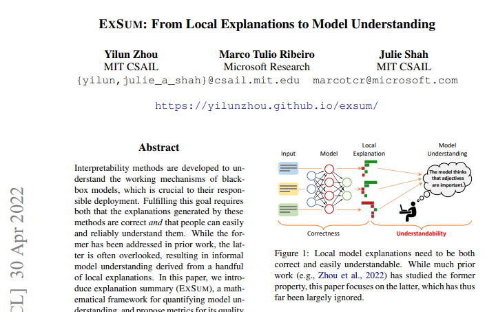在未来,Zhou希望通过将可理解性的概念扩展到其他标准和解释形式,如反事实解释(表明如何修改输入以改变模型预测)来建立这项工作。目前,他们专注于特征归因方法,这些方法描述了模型用于做出决策的各个特征(如电影评论中的文字)。