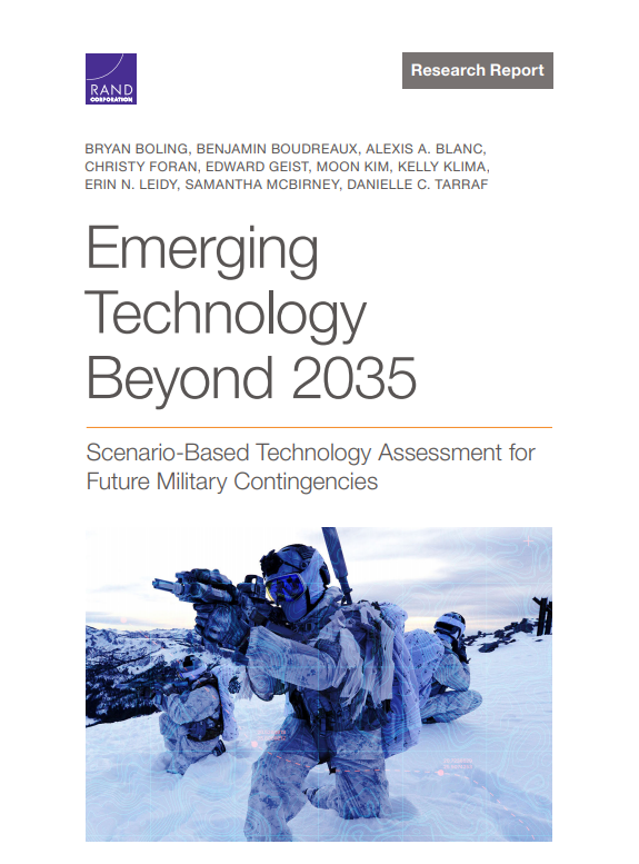 兰德公司发布《2035年后的新兴技术:基于典型场景的未来军事突发事件技术评估》(Emerging Technology Beyond 2035: Scenario-Based Technology Assessment for Future Military Contingencies)报告,该报告介绍了美国陆军未来司令部(Army Futures Command)发起的“2035年后新兴技术趋势的影响”(Impact of Emerging Technology Trends Beyond 2035)项目的实施情况。该项目的目标是确定2035年以后潜在的新兴技术趋势,评估将这些新兴技术应用于军事行动的可行性,并描述这些技术在整个竞争连续体中的军事影响。该报告侧重于基于情景的技术评估,并为此详细制定了5个说明性情景:爱迪生在海外(Edison Abroad)、北极深处之战(Battle of the Arctic Depths)、战争机器之雾(Fog of War Machines)、托马斯·谢林在朝鲜(Thomas Schelling in the DPRK)、第三次海湾战争(Gulf War Ⅲ)。该报告对“北极深处之战”情景中确定的候选技术进行更详细的评估,包括润滑油、量子、太空运输、飞行器、自主武器系统(AWS)、生物技术等技术领域,并提出美国陆军应发展关键伙伴关系、为未来突发事件做好准备、考虑未来技术评估的预期结果、解决现代化优先事项和需求差距等建议。
