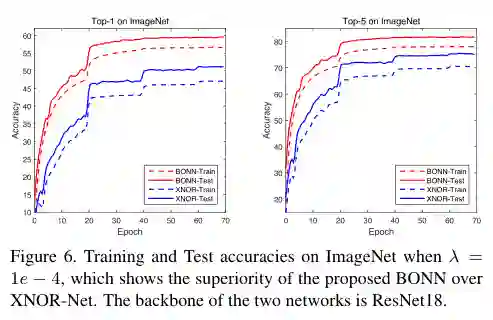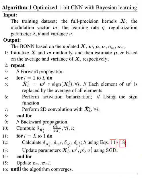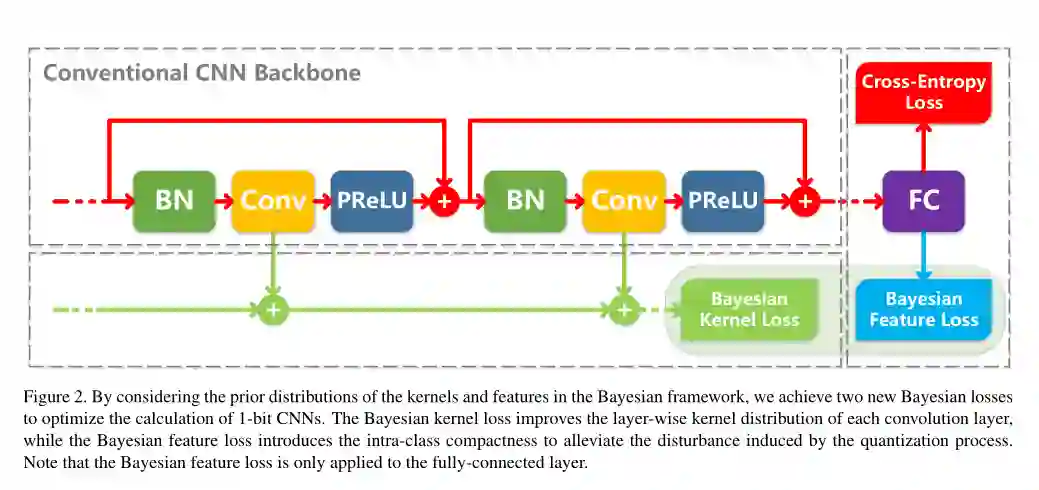 摘要: 深度卷积神经网络(Deep convolutional neural networks, DCNNs)通过制作各种破纪录的模型,主导了计算机视觉领域的最新发展。然而,在资源有限的环境下,如嵌入式设备和智能手机上,实现强大的DCNNs仍然是一个巨大的挑战。研究人员已经认识到,1位CNNs是解决这一问题的一个可行方案;然而,与全精度DCNNs相比,它们的性能较差。在本文中,我们提出了一种新的方法,称为贝叶斯优化1位CNNs(简称BONNs),利用贝叶斯学习这一成熟的解决困难问题的策略来显著提高极端1位CNNs的性能。我们在贝叶斯框架中加入了全精度内核的先验分布和特征,以端到端的方式构造了1位CNNs,这在以前的相关方法中都没有考虑到。在理论支持下,实现了连续和离散空间同时优化网络的贝叶斯损失,将不同的损失联合起来,提高了模型的容量。在ImageNet和CIFAR数据集上的大量实验表明,与最先进的1位CNNs相比,BONNs具有最佳的分类性能。