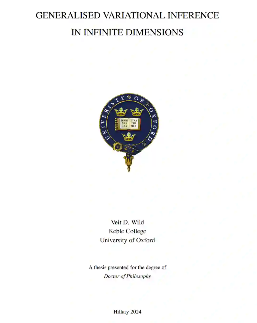 本论文针对当参数空间为无限维函数空间时的变分推断(Variational Inference, VI)与广义变分推断(Generalised Variational Inference, GVI),建立了一套严谨的数学理论。在对 VI 与 GVI 的理论理解得到深化的基础上,我们提出了若干新的方法,通过引入无限维变分参数或采用无限维梯度下降方法来求解 VI 与 GVI 的优化问题。