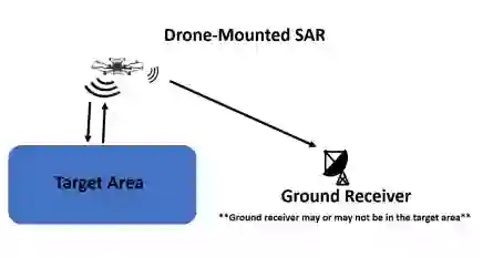 这项工作的想法是让雷达从无人机安装的SAR中照亮目标区域,形成SAR图像,同时将数据传输给地面的通信接收器。如图1.1所示,通信接收器可能在目标区域,也可能不在目标区域。通信接收器是[13]中的一个焦点。本论文的重点是雷达接收器。