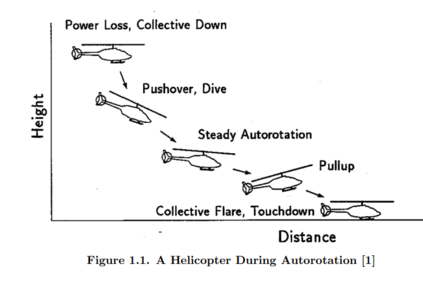 在美空军之前开展的工作中,成功实施了 GPOPS-II(一种伪谱最优控制求解器),用于在完全功率损失情况下寻找直升机的最优控制和最优轨迹。GPOPS-II 被认为是生成飞行前数据(如 HV 图,又称 “死亡曲线”)的有用工具,尽管由于程序的功能,解决方案仅以时间历史形式提供,无法生成明确的控制法则(如 u=f(x,t))。此外,GPOPS-II 不适用于实时应急,因为计算时间大约为几分钟。理想情况下,在实时紧急情况下的应用包括将算法解决方案映射到驾驶舱内的可视化辅助设备上,可能会显示在 HUD 或 MFD 上。由于上述局限性,最近开展了一项研究,利用深度强化学习算法为这种情况下的直升机生成最佳控制法则,如果证明成功,最终将允许设计各种驾驶舱驾驶辅助工具。据预测,此类驾驶辅助系统可减少在执行紧急无动力着陆时飞行员的工作量,并从总体上提高在此类事件中安全着陆的概率。提出的课题讨论了如何使用近端策略优化(PPO)算法,为直升机在完全失去动力紧急着陆的情况下找到最佳控制策略。任务包括使用 PPO 算法设计和训练一个行动者神经网络和一个批判者神经网络,同时开发直升机的动态运动方程,定义奖励结构并调整相关的超参数。事实证明,PPO 算法总体上是可行的,它可以在各种初始飞行条件下,使简单建模的直升机安全着陆。