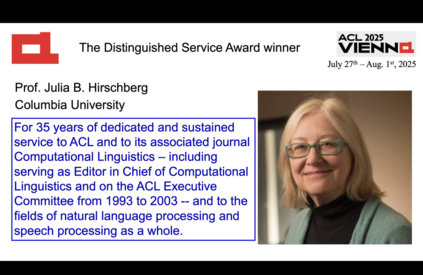 今年的获奖者是哥伦比亚大学计算机科学教授 Julia B. Hirschberg。