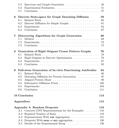在这项工作中,我们探讨了如何改进旨在处理图结构的机器学习算法。首先,我们利用分布式计算算法的思想来改善图神经网络在图分类任务上的表现,通过增强其表达能力和效率。在工作的第二部分,我们专注于生成性任务。生成性任务,如生成与一组提供的示例相似的新示例,可以被视为对给定领域理解的终极测试。为此,我们提出了多种改进通用生成方法的方式,使其更适应于图领域,而非采用先前的方法。例如,首先通过生成相应的图谱来生成大规模图结构。或者确保用于生成邻接矩阵的扩散过程保持离散。我们进一步展示了在两种不同的图生成领域适应中生成离散结构的现实世界应用性。具体来说,是为刚性折纸生成折痕图案,以及生成在体外已被证明能够良好执行其功能的新型抗体。