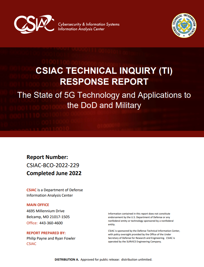 美国防部已将5G技术列为一项重要的战略技术。从美国防部5G战略开始,"......那些掌握先进通信技术和无处不在的连接的国家将拥有长期的经济和军事优势" [8]。通信和互联系统的未来是5G,这本身就使它对美国防部极为重要。通过追求5G技术的最大潜力,美国防部将有能力在技术、性能和额外能力方面达到新的高度。