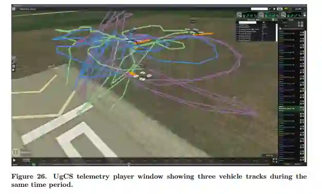 在两天的飞行测试中产生的13组三飞行器群数据提供了一个基线算法分析。在这些测试中,飞行器分离距离平均偏离理想状态5.61米,分离距离违规率<6.39%。蜂群在最佳情况下实现了0.27米的平均偏差和0.43%的违规率。在5赫兹的更新率下,飞行器之间的平均数据包损失为4.94%,最佳通信滞后< 0.04秒。