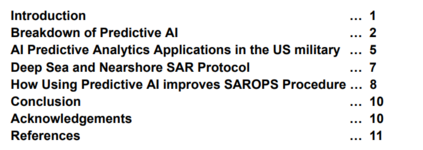 本文的目的是探讨上述人工智能的用途,具体来说,就是在涉及美国海岸警卫队(USCG)的深海和近岸搜救(SAR)案例时,分析实施预测分析人工智能机器学习算法的可能性。这将通过将人工智能模型与海岸警卫队目前用于定位溺水人员的计算机程序(即搜救优化规划系统(SAROPS))配对来实现。本文的研究将解释为什么在美国海岸警卫队中实施人工智能是有益的,同时还将解释将使用哪种人工智能,以及如何对人工智能进行编程以完成所需的必要任务。本文还将介绍预测分析型人工智能在军事领域的现状、美国海岸警卫队(USCG)当前的搜救协议,以及美国海岸警卫队(USCG)如何将人工智能与当前的搜救行动结合起来,以提高搜救成功的可能性(POS)。