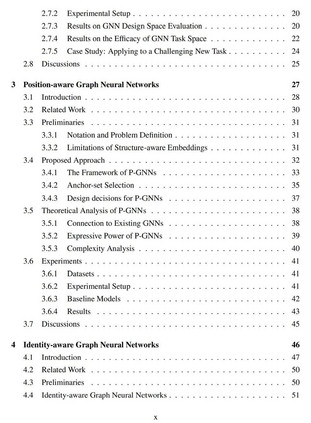 复杂的拓扑结构。图中的节点可以任意地相互连接;因此,深度学习模型必须适应输入数据的形状/结构。此外,所有可能图的空间是巨大的,因为有 个具有n个节点的可能简单图;因此,将图映射到有意义的低维嵌入是极具挑战性的。