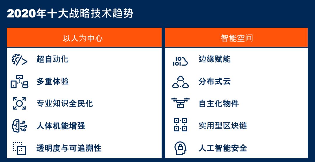 以下是Gartner确定的2020年十大战略技术趋势: