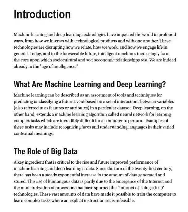 机器学习和深度学习以深远的方式影响着世界,从我们与技术产品的交互方式以及彼此之间的交互方式来看,这些技术正在影响我们的关系,工作方式以及我们如何融入生活。如今,在可预见的将来,智能机器会成为社会文化和社会经济关系赖以生存的核心。
