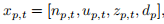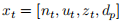 离散时间步骤t的状态向量可以表示为三个向量的组合。,其中np,t是文本笔记的表示向量,up,t表示数值向量,zp,t与医疗事件的编码ID有关,dp对应于静态的病人信息,如人口统计学。为了简化符号,我们把时间戳t的病人向量称为