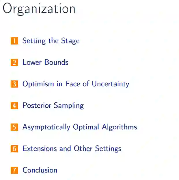 摘要: 强化学习(RL)研究的是当环境(即动力和反馈)最初未知,但可以通过直接交互学习时的顺序决策问题。学习问题的一个关键步骤是恰当地平衡对环境的探索,以便收集有用的信息,并利用所学的政策来收集尽可能多的回报。最近的理论结果证明,基于乐观主义或后验抽样的方法(如UCRL、PSRL等)成功地解决了勘探开发难题,并且可能需要比简单(但非常流行)的技术(如epsilon贪心)小指数的样本来收敛到接近最优的策略。乐观主义和后验抽样原则直接受到多臂bandit文献的启发,RL提出了具体的挑战(例如,“局部”不确定性如何通过Markov动力学传播),这需要更复杂的理论分析。本教程的重点是提供勘探开发困境的正式定义,讨论其挑战,并回顾不同优化标准(特别是有限时间和平均回报问题)的主要算法原则及其理论保证。在整个教程中,我们将讨论开放的问题和未来可能的研究方向。