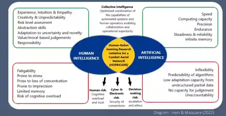 根据P. Scharre的Centaur Warfighting模型,这反而是一个优化使用自主技术的问题,同时将人作为武器系统的核心。这种混合方法从自动化的贡献中获益,同时保持人的能力,以利用它们为任务服务。因此,人机合作(MMT)比单独的人类行动或单独的人工智能更有效,可以充分利用各自的优势。