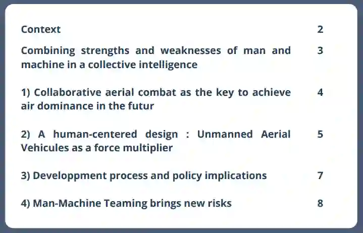 如果人工智能能够弥补人类的弱点,那么它在提高人类绩效方面尤其具有强大的潜力。因此,空中环境需要一种以人类为中心的、协作性的和增强性的人工智能,能够预测其人类伙伴的意图,发现偏差并在协作性空中作战系统和作战概念的框架内与他们共生行动。
