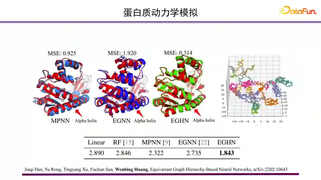 实质上,蛋白质的折叠过程背后是由着物理规律进行驱动的,所以我们可以用我们的模型对其物理过程进行模拟和预测。最后可以发现预测的误差有了明显的下降。