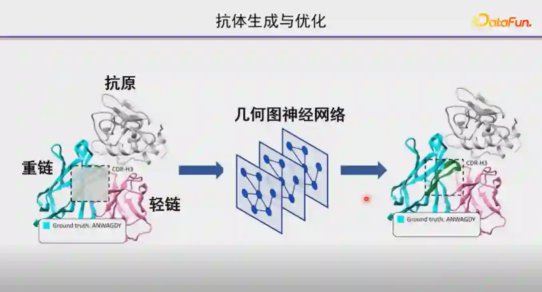 在抗体生成设计中,我们在给定抗原的情况下,对抗体中最重要的 CDR 序列片段进行预测。所得到的预测序列无论从氨基酸序列的匹配程度还是几何结构的重合度都比现在的方法 RefineGNN 效果要好。04