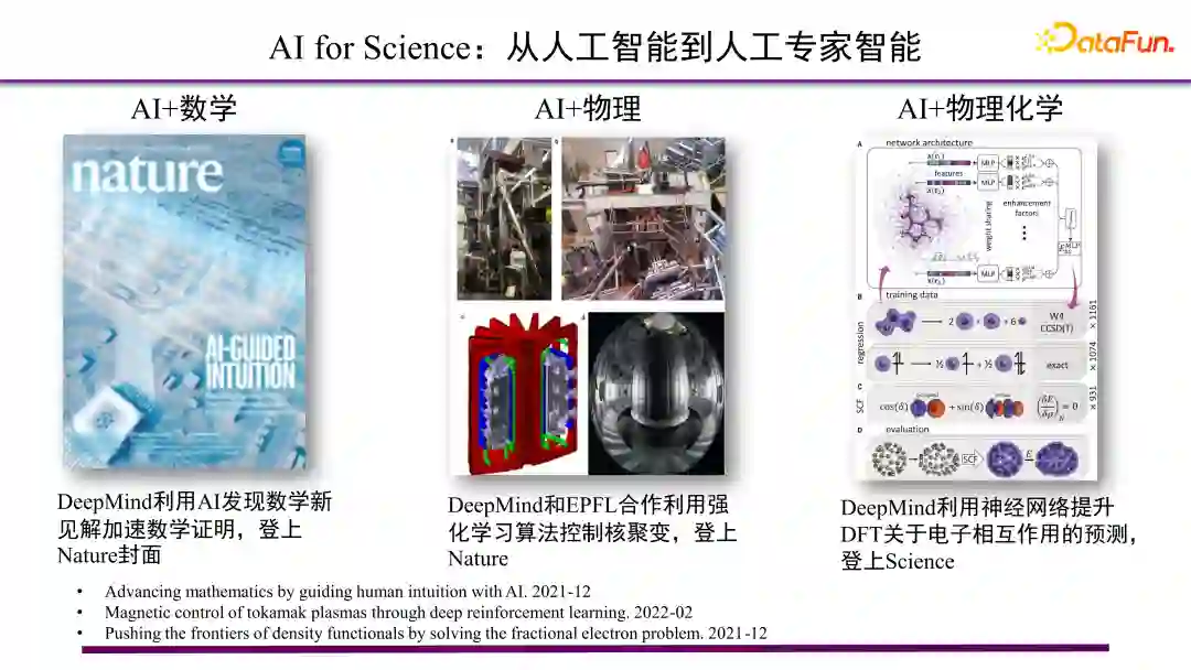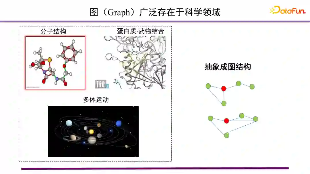 DeepMind 将 AI 应用于科学领域的思想,有望成为从人工智能转变为人工专家智能的新转折点。在 2021 年末到 2022 年初,DeepMind 接连发表多篇 AI for Science 领域文章,将 AI 技术应用于传统自然科学如数学、物理、物理化学等领域,实现利用深度学习算法进行数学推理、控制核聚变、提升 DFT 的预测性能等重要突破。2. 广泛存在于科学领域的“图”(Graph)