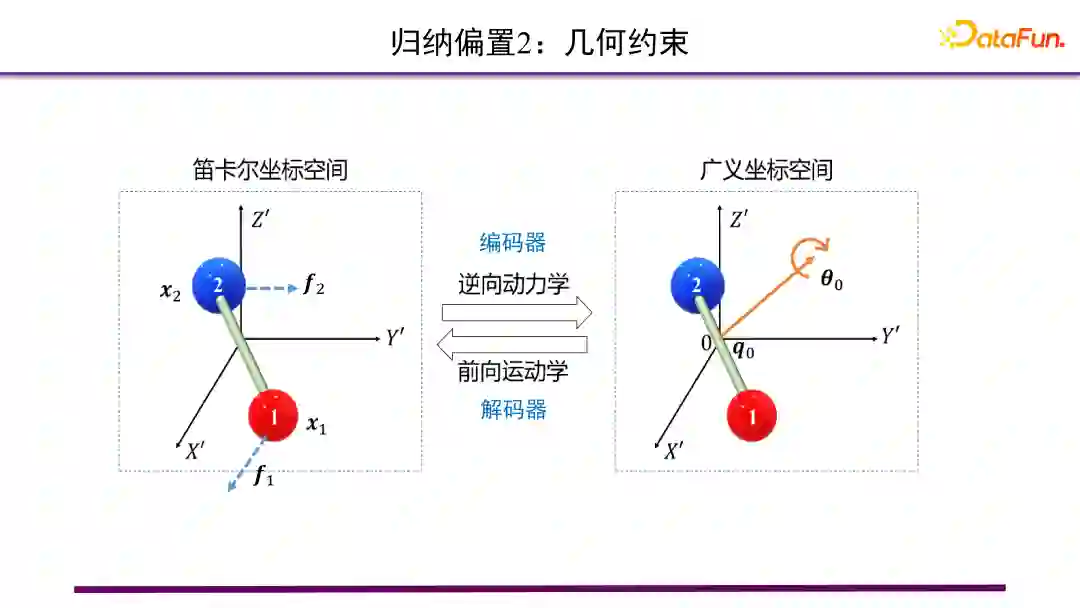 3. 几何约束介绍完对称性的归纳偏置之后,我们来介绍几何约束角度上的归纳偏置。最直观的几何约束是,对于长度不变的连杆,其两端的节点只能相对转动。