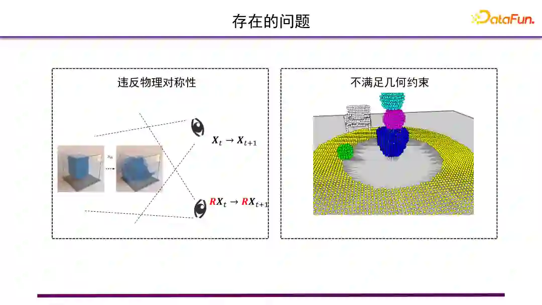 因此之前的方法在忽略这些科学数据特点的情况下,可能违反物理的对称性或者不满足几何约束等,造成模型性能的下降。 以物理对称性为例,考虑不同视角下水分子在立方体中的运动过程。在t时刻如果对状态 进行视角的变换,即将变为 ;那么在t+1时刻, 应仍为对 进行旋转之后的结果 。