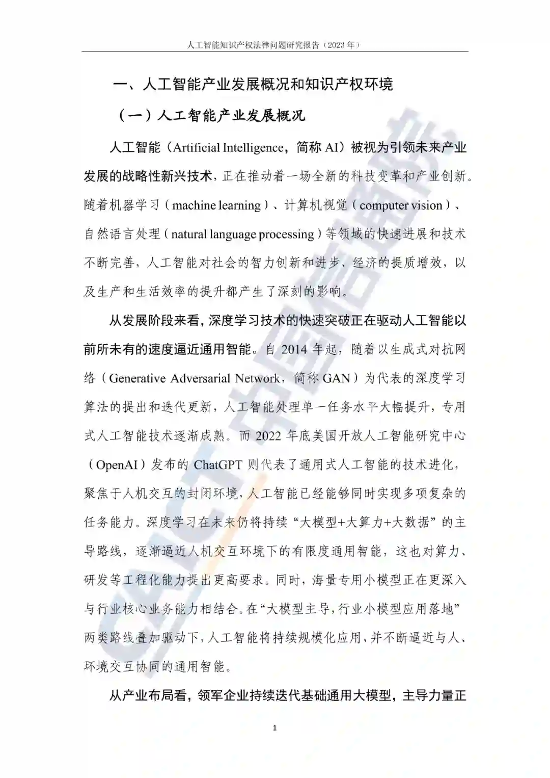 1. 人工智能产业知识产权环境