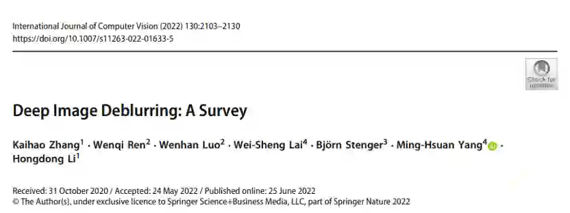 本文提出了一个图像去模糊方向的综述,来自澳大利亚国立大学、中山大学、美国加州大学 Merced 分校、日本乐天研究所的研究者回顾了基于深度学习的图像去模糊技术研究进展,回顾了图像去模糊的研究历史,总结了当前的研究进展,并进行了展望。该综述近期被计算机视觉旗舰期刊 International Journal of Computer Vision 接收。