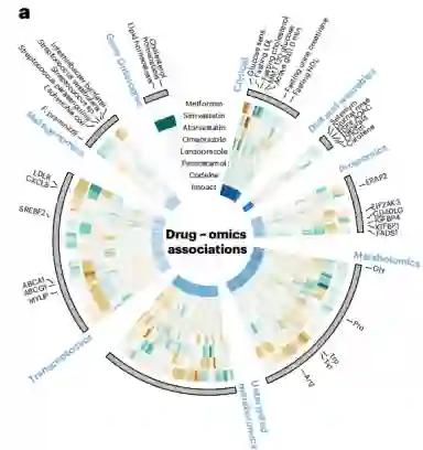 对此,哥本哈根大学Søren Brunak和Simon Rasmussen团队以及IMI DIRECT联盟开发了一个基于深度学习的框架——多组学变分自编码器(MOVE),该模型用于整合这些数据。作者团队将其应用于789名新诊断的具有深度多组学表型的Ⅱ型糖尿病患者数据,探究药物组学相关性。作者在多模态数据集中确定了20种最常见的药物组学相关性,发现了二甲双胍和肠道微生物群之间的新联系,以及辛伐他汀和阿托伐他汀两种他汀类药物的分子反应,最终得出药物效应分布在多组学模式中的结论。