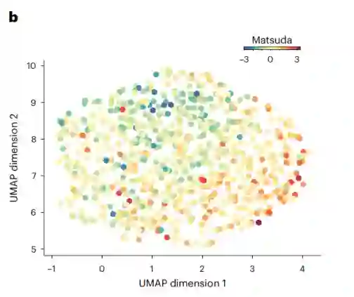 图:患者的潜在UMAP表现为潜在表现(根据个体的z-scale Matsuda指数进行着色)