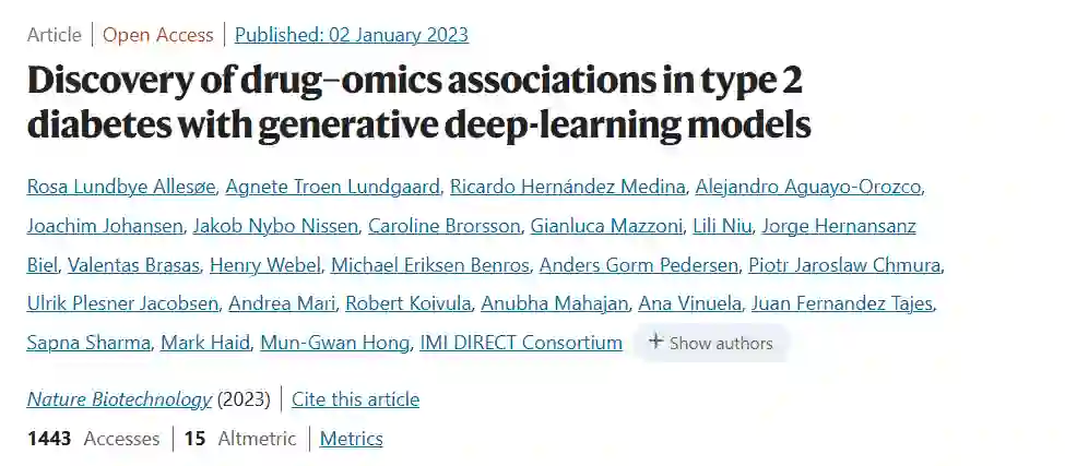 作者强调,该方法不限于药物协会。原则上,所有组学数据都可以评估数据集之间的关联。因此,作者相信,该生成方法为大型多组学数据分析提供了新的可能性,可以发现潜在的新生物标志物,进行思维实验并在高维分子数据中调查药物的潜在直接影响,从而得出可测试的假设。 参考资料 Allesøe, R.L., Lundgaard, A.T., Hernández Medina, R. et al. Discovery of drug–omics associations in type 2 diabetes with generative deep-learning models. Nat Biotechnol (2023). https://doi.org/10.1038/s41587-022-01520-x