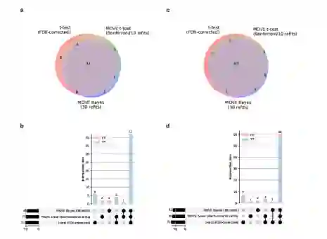 图:输入数据的标准t检验、MOVE t检验和MOVE Bayes方法之间药物组学相关性显著重叠