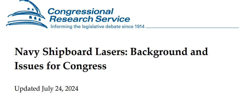 本报告向国会提供了海军正在开发的用于水面舰艇自卫的舰载固体激光器(SSL)的背景信息和问题。海军 2025 财年拟议预算要求继续为其中一些工作提供研发资金。