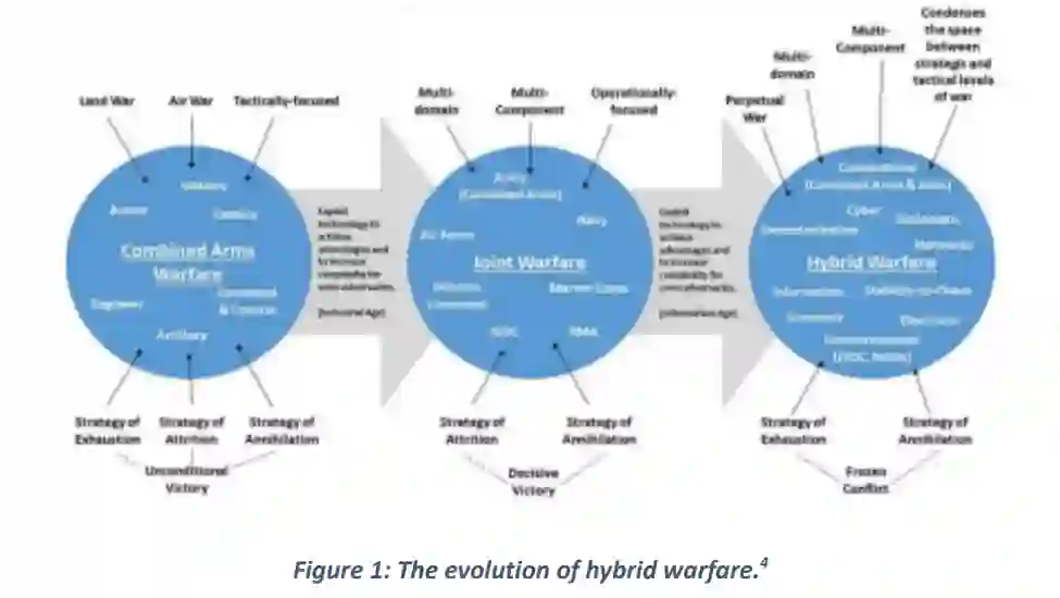军事战略的演变和从以往冲突中得到的启示表明,目标也可以通过非军事手段来实现。随着战争的转变,军事条令也发生了变化。混合战争是一个相对较新的概念,其确切形式和方法仍有待全面界定(Bjerregaard,2011 年)。
