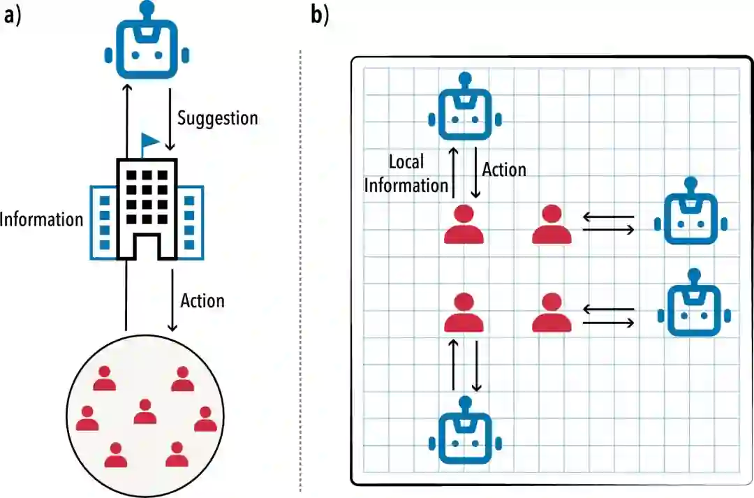 图6. LLM在社会决策中的整合应用。左图:智能体为政府或第三方组织提供决策支持,右图:智能体辅助个人决策的过程。此类智能元素的整合机制,在概念上类似于领域专家委员会模式,但其规模可扩展至前所未有的水平。